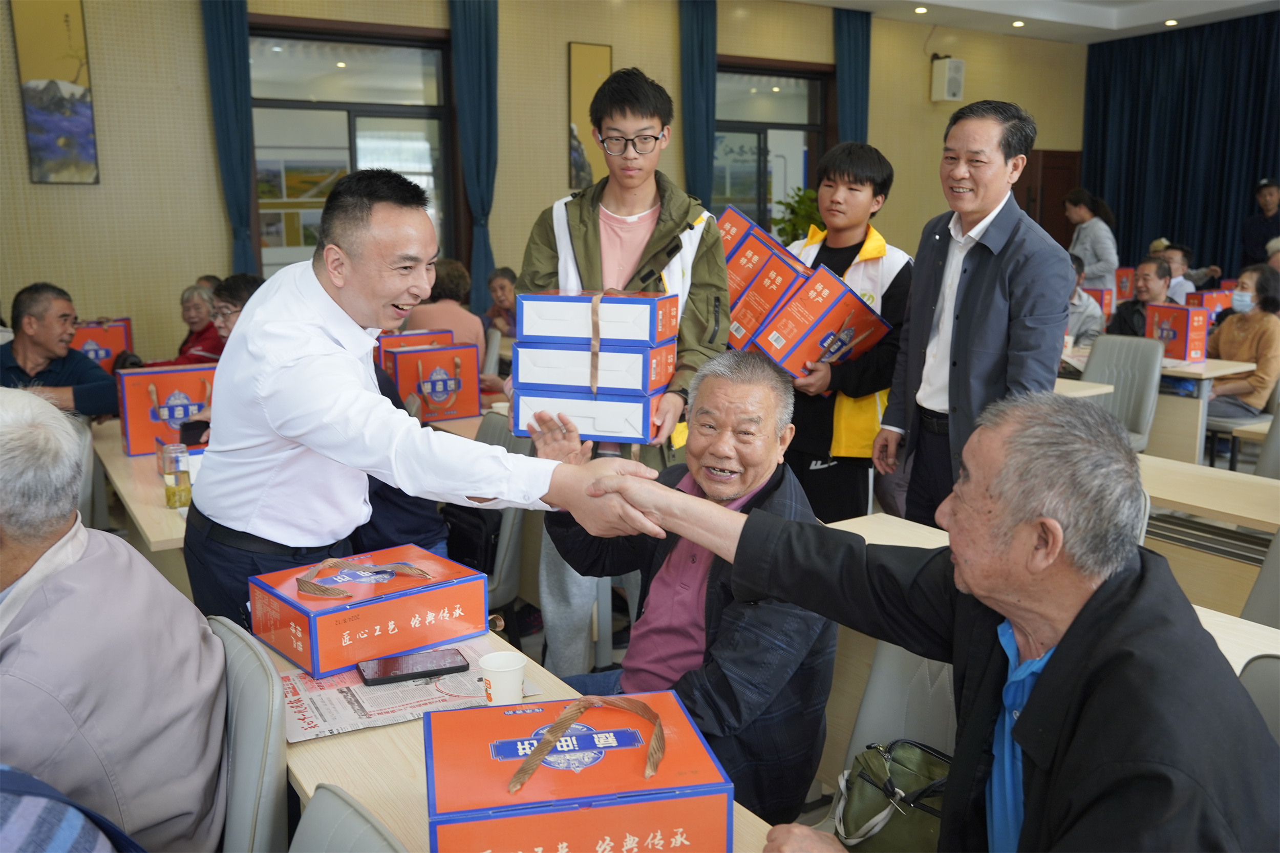 李进代表开云手机客户端党委向广大离退休老同志表示节日的问候,并向他们发放重阳糕点。