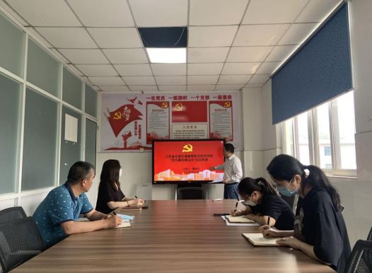 5月份专题学习了《中国共产党党内监督条例》等党规党纪,组织了3位党员下班级进行廉洁主题教育。