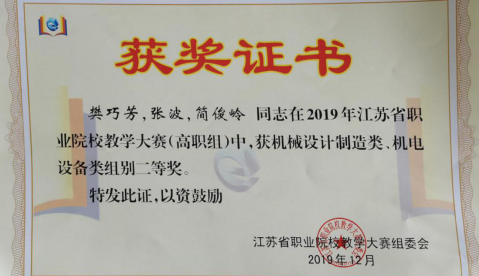 江苏省职业院校教学大赛(高职组)一等奖(樊巧芳)