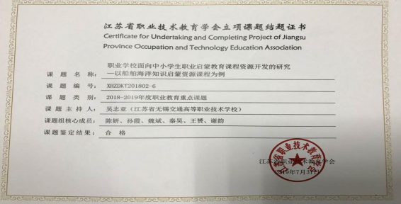 结业证书-职业开云手机客户端面向中小学生职业启蒙教育船舶海洋知识课程资源开发的研究