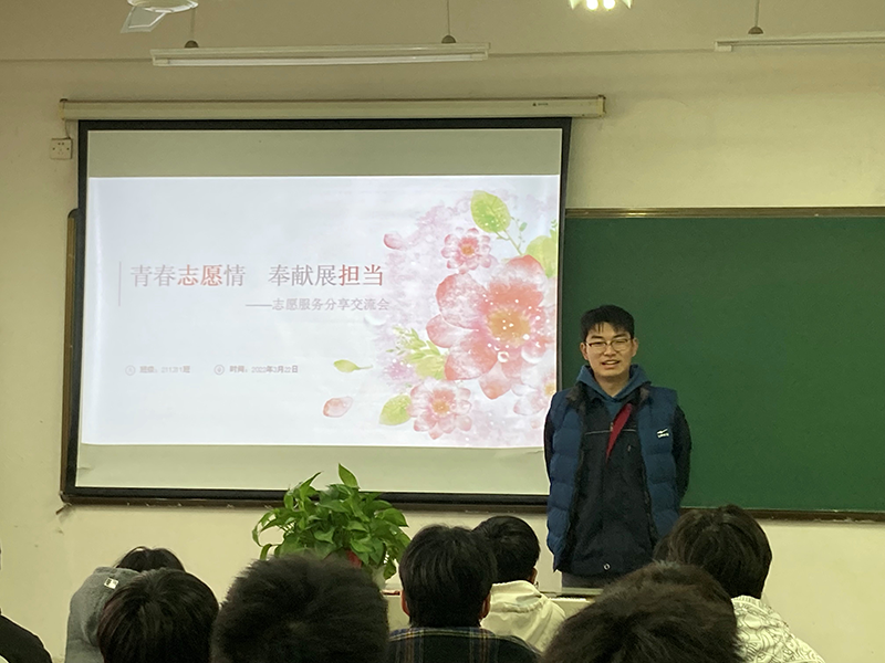 3月22日,211311班在教室开展了“青春志愿情 奉献展担当——志愿服务分享会”活动,邀请了开云手机客户端志愿服务经验丰富的谢宇轩同学、聂东源同学、朱科丞同学、冯祯豪同学给大家做经验分享,他们从自身参与的志愿服务谈起,向同学们诠释了“奉献 友爱 互助 进步”的志愿服务精神,同学们纷纷表示要向学长们学习,投身志愿服务活动,做雷锋精神的传承者。