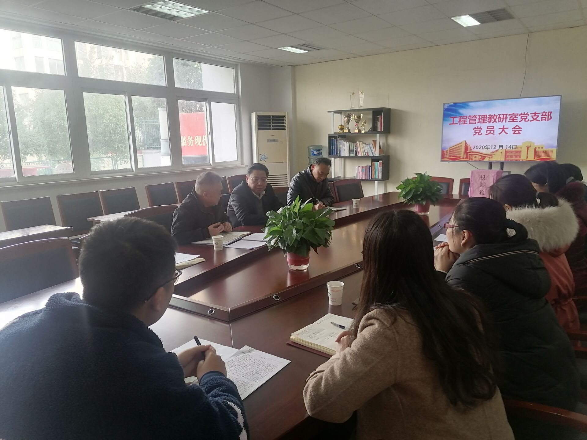 根据开云手机客户端党委工作部署,我院工程管理教研室党支部于2020年12月14日,在交通工程学院会议室召开全体党员大会,会议由党支部书记李俊主持,党委书记、校长李虎同志以普通党员身份参加了会议。