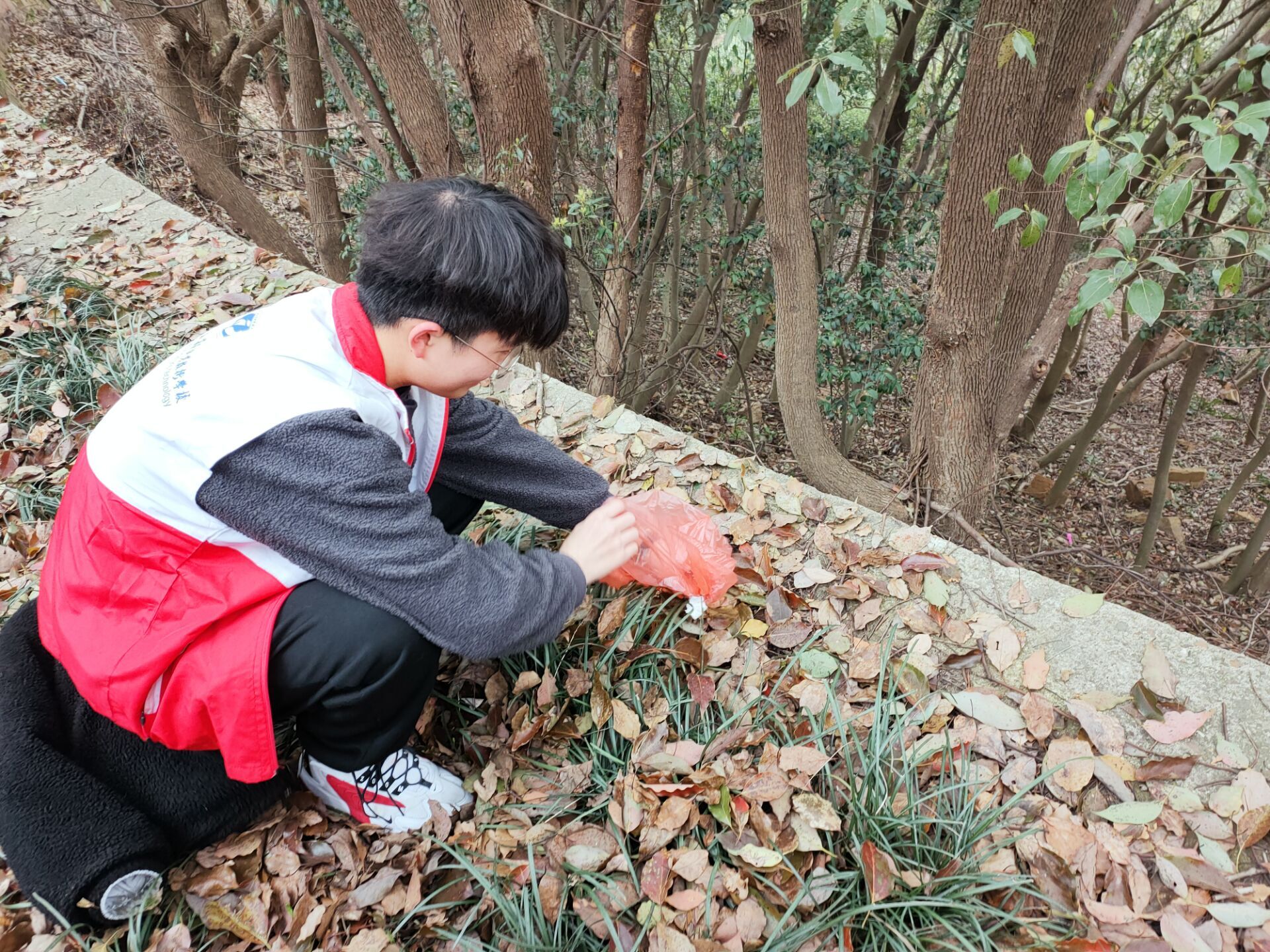 本次活动共持续2个半小时,同学们从无锡动物园边上的入口进入,沿途捡拾上山道路上的垃圾、杂物,至二茅峰返程。