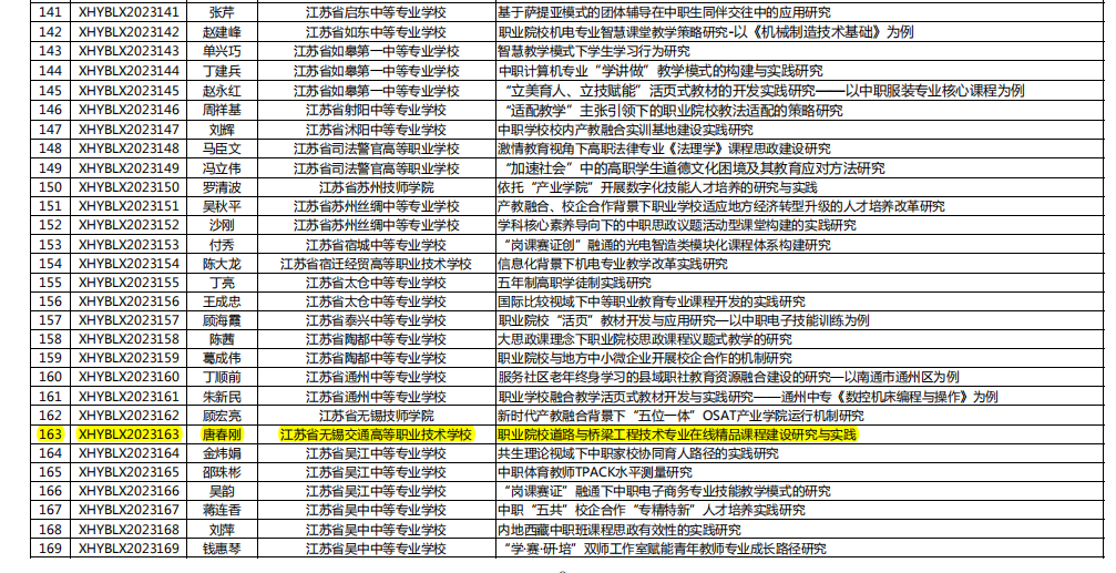 4月11日,江苏省职业技术教育学会印发《开云(中国)官方公布2023-2024年度江苏职业教育研究立项课题名单的通知》,公布2023-2024年度江苏职业教育研究课题立项,唐春刚主持的《职业院校道路与桥梁工程技术专业在线精品课程建设研究与实践》获批立项。