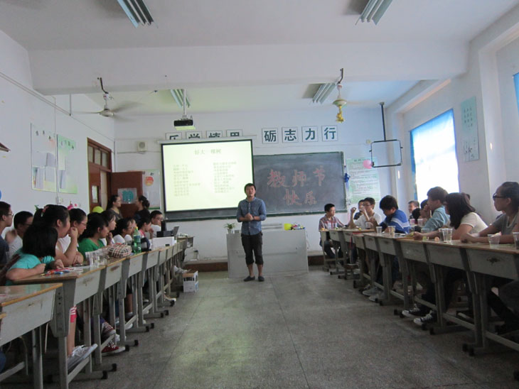 2013年9月10日下午,交通工程系121422班在教室举行教师节主题班会,与会的师生们用这个特殊的方式来庆祝第29个教师节。参加主题班会的有该班全体同学、交通系党支部毛兰霞书记、班主任赵巧明老师、及部分专业课老师、辅导员等。