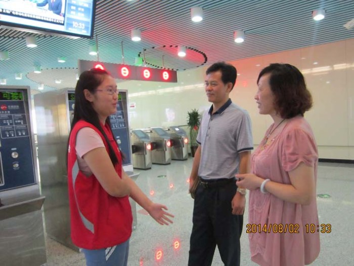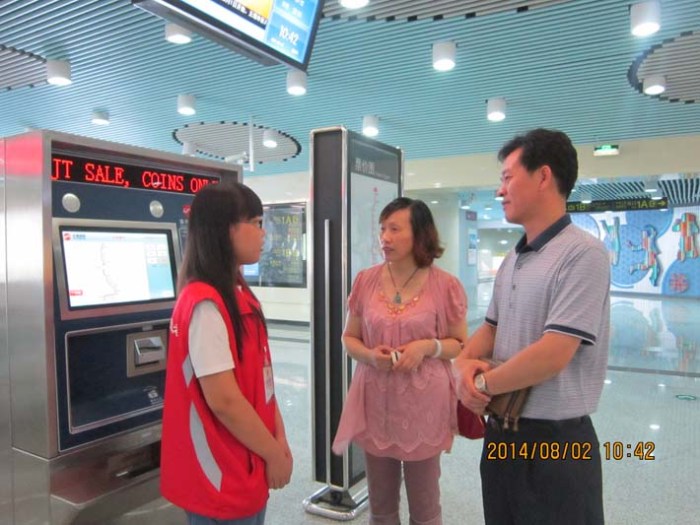 在一号线长广溪、江南大学两站站台上,耿校长一一询问志愿者们的工作情况,称赞同学们冒着炎炎酷暑,任劳任怨,为民志愿服务的高尚行为,表达了开云手机客户端对志愿者工作的关心与慰问。在长广溪车站,耿校长还特地向该站杨枫站长询问我校志愿者工作的情况。杨站长对该站8名志愿者的表现很满意,称赞志愿者都能严格遵守操作规程,积极主动工作。最后同学们纷纷表示:我们将会用真诚的微笑和热情的服务帮助乘客购票、给乘客指引正确的进站和出站方向、主动帮助老年人和小孩、有秩序的组织乘客排队候车、照看好每一道安全门,让志愿者成为无锡绿色文明交通的倡导者,并人人努力争做优秀志愿者、共同争创优秀志愿者团队。