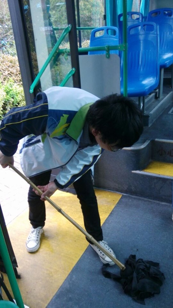 2014年 4月2日下午2点30分,交通工程系131422班24名同学在班主任的带领下来到梅园公交总站帮忙擦洗公交车。在公交总站,同学们提前联系了站负责人赵师傅,他给同学们分配了任务。同学们六个人一组分成了四组,每组两名同学负责擦洗汽车外身,两名同学负责到车厢里扫地拖地,剩余的两名同学负责擦洗汽车玻璃、座位等。由于每辆公交车停靠总站的时间有限,同学们必须在较短的时间内尽快完成任务。看到同学们满头大汗的完成各自的任务,车站里的司机与员工们纷纷竖起了大拇指。当里面负责清洗的阿姨拿着矿泉水过来给同学们喝时,大家都异口同声的说:“不要,我们有。”看到同学们沉浸在助人为乐的欢乐中,老师甚是欣慰。这样不知不觉已是下午4点45分,同学们总共擦洗了大概有20多辆公交车,最后大家与站里面的师傅、阿姨一一道别,依依不舍的离开了公交总站,返回开云手机客户端。