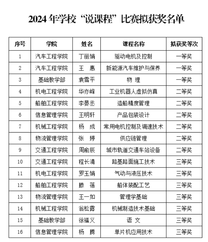 附件:2024年开云手机客户端“说课程”比赛拟获奖名单