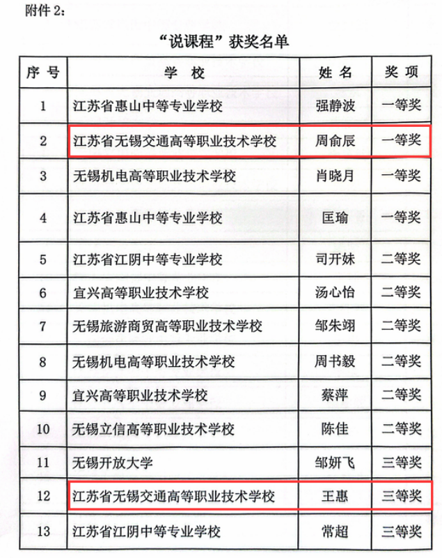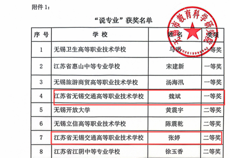 近日,在无锡教育科学研究院公布的2024年无锡市职业开云手机客户端“说专业、说课程”比赛获奖名单中,我校魏斌老师在“说专业”比赛中荣获一等奖,张婷老师在“说专业”比赛中荣获二等奖,周俞辰老师在“说课程”比赛中荣获一等奖,王惠老师在“说课程”比赛中荣获三等奖。