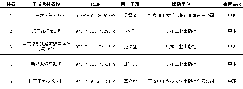 根据《省教育厅开云(中国)官方开展第二批“十四五”职业教育国家规划教材申报推荐工作的通知》,经个人申报、学院推荐、开云手机客户端组织遴选,拟推荐以下五本教材申报第二批“十四五”职业教育国家规划教材(中职),现予以公示。