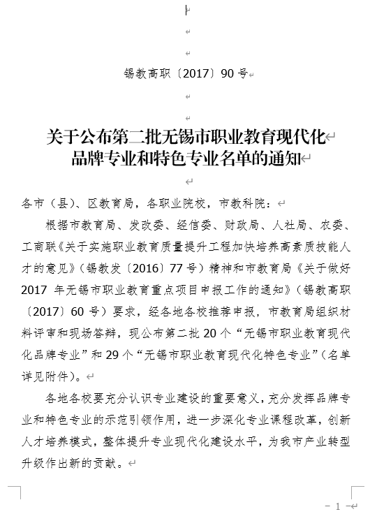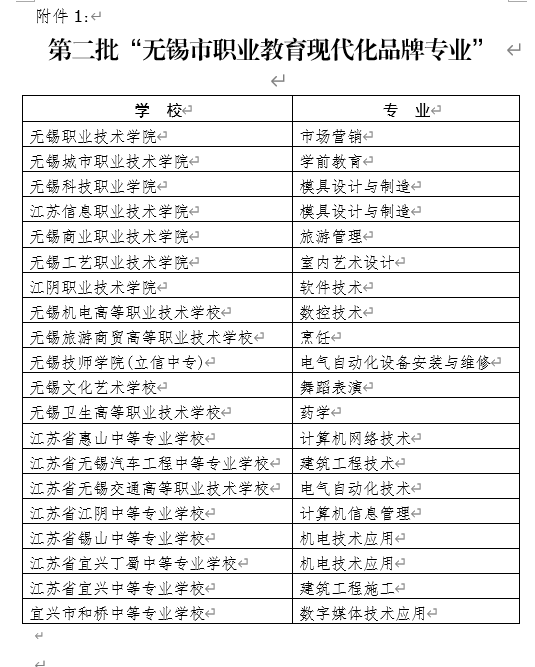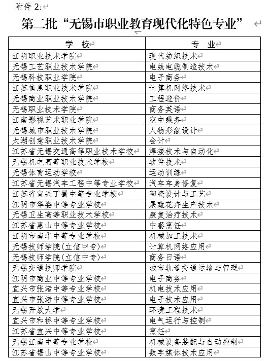 开云(中国)官方公布第二批无锡市职业教育现代化品牌专业和特色专业名单的通知