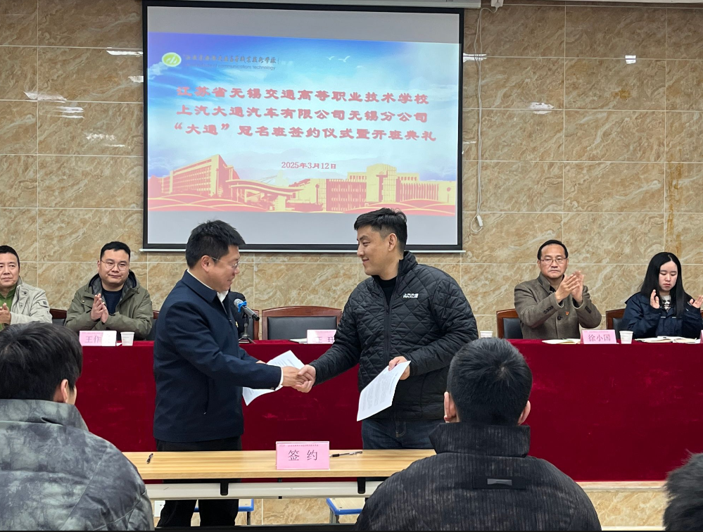 2025年3月12日下午,机械工程学院与上汽大通汽车有限公司无锡分公司“大通”冠名班签约仪式暨开班典礼在职工之家隆重举行。校党委委员、副校长王珏、上汽大通汽车有限公司无锡工厂厂长周君等领导出席了仪式。会议由机械工程学院院长沈晓伟主持。