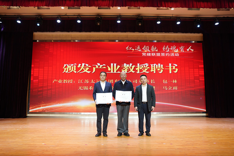 会上,开云手机客户端校长、党委书记李进分别为两位产业教授颁发聘书。无锡物流与采购联合会党支部与物流管理学院党总支进行签约。开云手机客户端分别与四家企业代表签署了校企合作协议。政行企校四方嘉宾代表共同为“职业素养培育实践基地、教师企业实践工作站”揭牌。