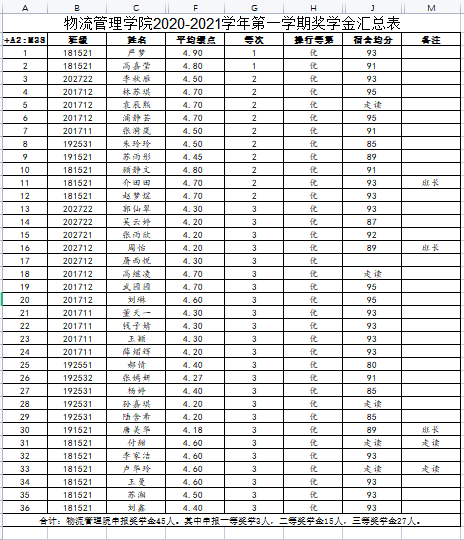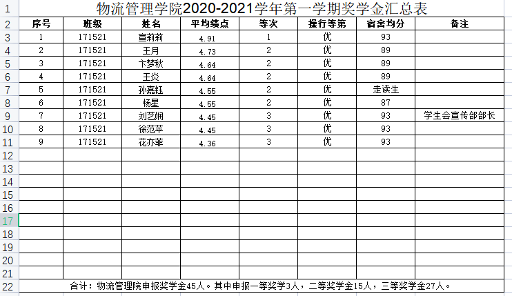 拟推荐宣莉莉等45名学生申报开云手机客户端奖学金。