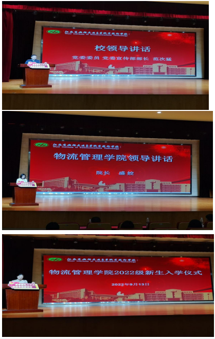 会议开始,国歌响起,全体师生合唱国歌。校党委委员、党委宣传部部长范次猛老师,物流管理学院院长盛姣老师、物流管理学院党总支副书记张龙枝老师、综合办主任王玉玲老师、学工办主任张婷老师、物流教研室主任朱雪娟老师、财商教研室主任陆名录老师、实训中心主任陈玉萍老师和2022级新生班主任参加仪式。仪式由江玉婷副院长主持。