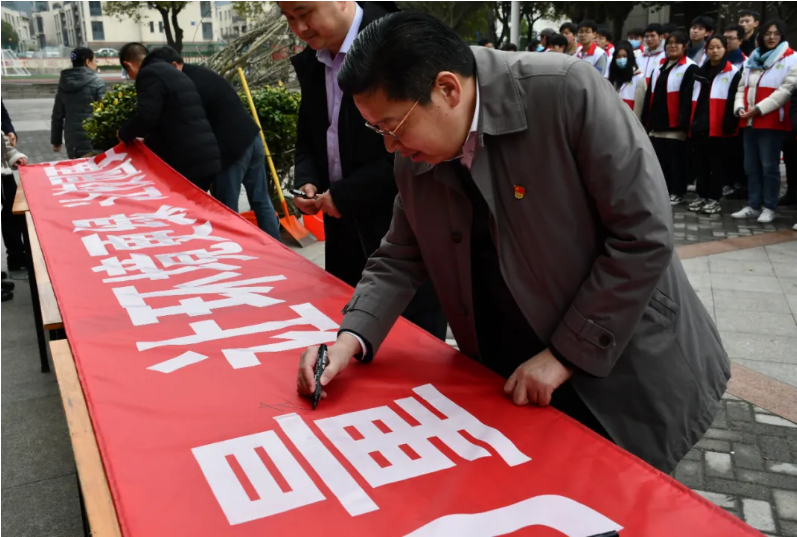 李书记带头在“贡献自己的力量,让环境更美丽”的横幅上签名,表达“让校园更绿、让校园更美”的绿色理念。随后,李书记同党员志愿者、学生志愿者一起,参与义务植树,为生态校园再添新绿。