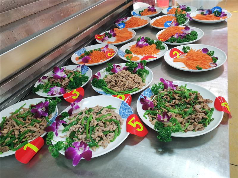 比赛现场,女教师们积极备战,拿出工作中的敬业以及严谨精神,开始了厨艺角逐。洗菜、切菜、放油、下料、摆盘……选手们动作娴熟,一气呵成,厨房顿时香味扑鼻。平日里在课堂上的女教师变身美厨娘,展示自己的独特厨艺。虽然只是几道家常菜,但是经过厨娘们的巧手制作后,都成了一件件美轮美奂、色香味俱全的艺术精品,各类美食扑鼻馨香更是引来众多教职工以及学生的驻足围观品尝。