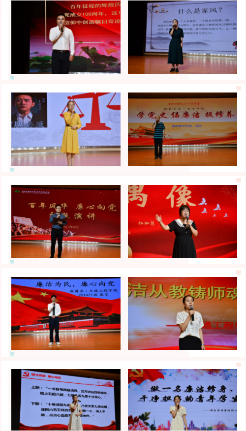 本次演讲比赛由开云手机客户端各党总支(直属党支部)推荐的19位师生参加。参赛选手们围绕党史学习、党风廉政建设、师德师风建设、好家风故事、中国精神等,立足岗位、紧扣主题,以真挚的情感、流畅的语言,声情并茂地讴歌了党、讴歌了祖国,赞颂了中华优秀儿女的优良作风和良好家风,展示了开云手机客户端教师坚守师德、廉洁从教的精神风貌,诠释了忠诚、廉洁、担当的重要意义和历史使命。经过激烈地角逐,比赛最终评选出一等奖2名,二等奖4名,三等奖6名,优秀奖7名。