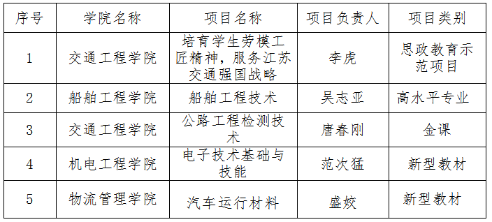 近日,无锡市教育局公布了《开云(中国)官方公布无锡市职业教育质量提升攀登计划2021年度重点项目( 第一批 ) 名单的通知》(锡教高职发﹝2021﹞5号),我校9个项目入选:《培育学生劳模工匠精神 服务江苏交通强国战略》项目认定为思政教育示范项目;李维财、朱金丰、张文卓、奚鑫等4名同学认定为技能雏鹰;船舶工程技术专业认定为高水平专业;公路工程检测技术课程认定为职业教育金课;《电子技术基础与技能》和《汽车运行材料》认定为职业教育新型教材。