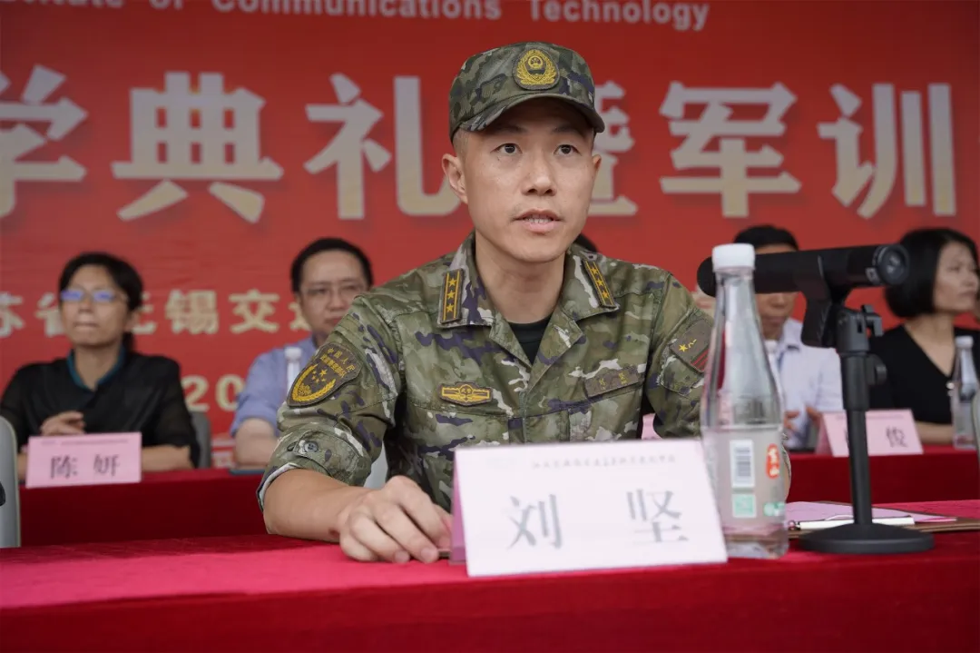 刘坚希望同学们端正思想,加强组织纪律性,用严的要求规范自己,用高标准衡量自己,在军训中服从命令,听从指挥,练出本领,训出风采,乘风破浪,不断成长。他希望全体教官要切实把部队优良传统融入到点滴军训工作中去,高标准高质量完成本次军训任务。