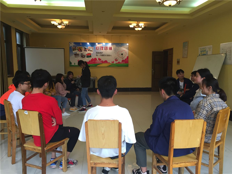 2019年 5月9日下午,在张家梅老师和郁韵老师的指导下,心理社团对心理志愿者组织了一场朋辈心理团辅活动,由社长何安琦为主持,名字叫《疯狂呐喊》,一场别开生面的游戏活动成功举办。