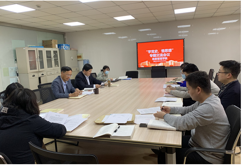2021420日下午,信息管理学院党总支学党史,悟思想专题交流会议在学院党员活动室召开,校党委委员、副校长邢勇及总支全体党员参加交流研讨,交流会由院长郑智飞同志主持。