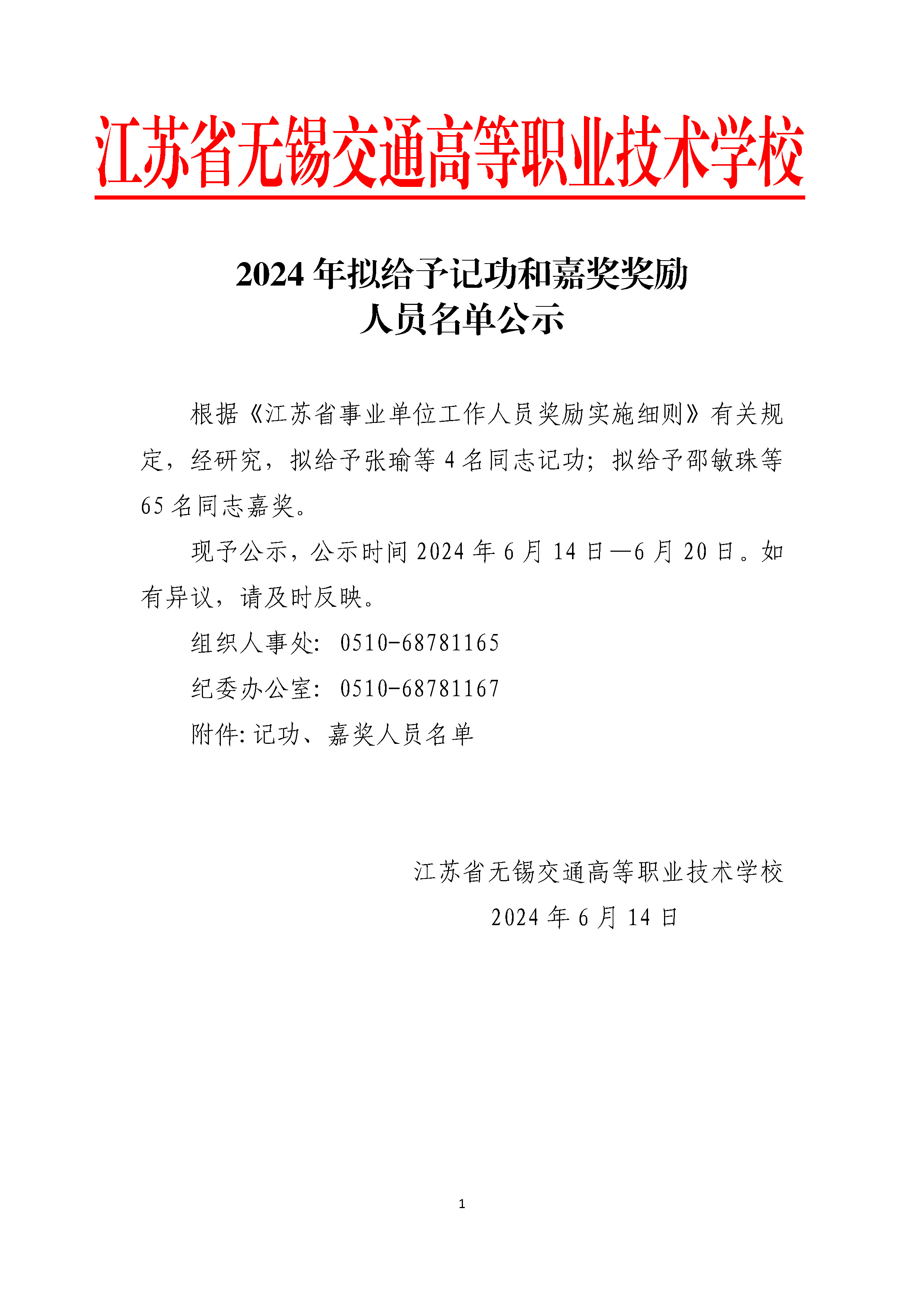 2024年拟给予记功和嘉奖奖励人员名单公示